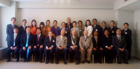 5月29日(土)12時15分からリーガロイヤルホテル6階末広の間において、Sidemann国際会長、 Jhee元国際会長、Chung韓国部会会長、Yang 韓国国際理事、Dr. Kyee Myint他ミャンマーからfellow6名と家族2名の他に日本部会から森山前国際会長、石川マスター、小室マスター、千田国際理事などが参加し行われ た。