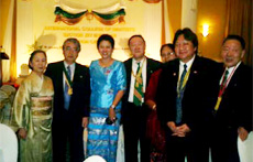 橋本国際理事の司会でSeidemann国際会長、Jhee元国際会長、森山前国際会長、ミャンマーを代表し てDr. Kyee Myintから挨拶を頂いた。その後用意された軽食を摂りながら、Dr.Kyee Myintからミャンマー部会についてスライドによる紹介があった。その後ミャンマー部会から日本部会に記念品の贈呈があった。